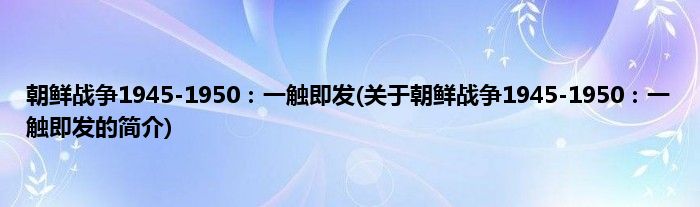 本文关于朝鲜战争1945-1950:一触即发的简介就讲解完毕,希望对大家有所帮助。