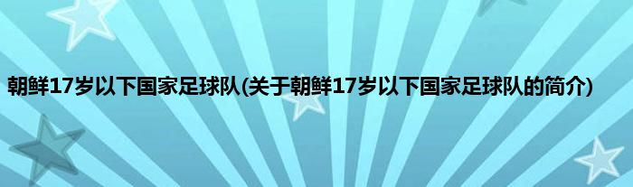 1、 朝鲜17岁以下国家足球队是指朝鲜17岁以下的足球代表队。