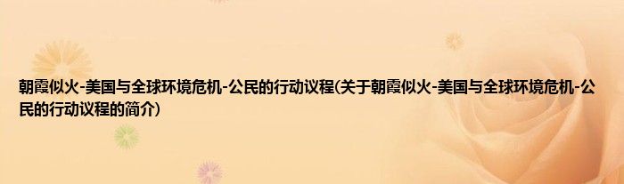 本文关于朝霞似火-美国与全球环境危机-公民的行动议程的简介就讲解完毕,希望对大家有所帮助。