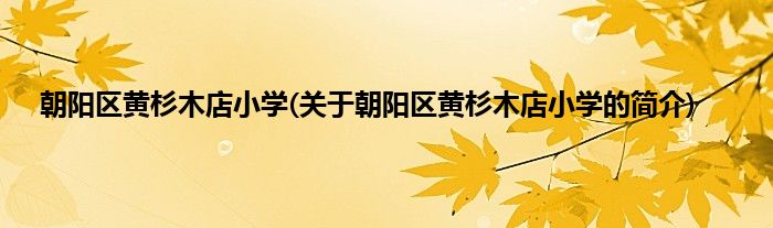 本文关于朝阳区黄杉木店小学的简介就讲解完毕,希望对大家有所帮助。