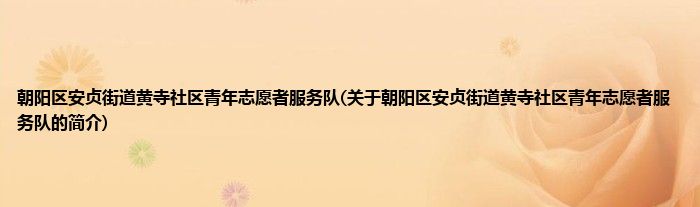 本文关于朝阳区安贞街道黄寺社区青年志愿者服务队的简介就讲解完毕,希望对大家有所帮助。