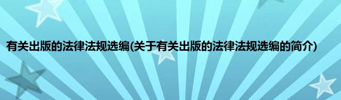 大家好,有关出版的法律法规选编,关于有关出版的法律法规选编的简介很多人还不知道,现在让我们一起来看看吧!
