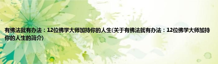 本文关于有佛法就有办法:12位佛学大师加持你的人生的简介就讲解完毕,希望对大家有所帮助。