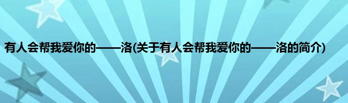 大家好,有人会帮我爱你的——洛,关于有人会帮我爱你的——洛的简介很多人还不知道,现在让我们一起来看看吧!