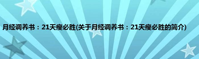 1、 《月经调养书,21天瘦必胜》是一本月经调养书。