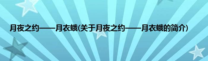 大家好,月夜之约——月衣蛾,关于月夜之约——月衣蛾的简介很多人还不知道,现在让我们一起来看看吧!