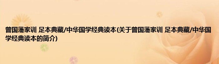 本文关于曾国藩家训 足本典藏/中华国学经典读本的简介就讲解完毕,希望对大家有所帮助。