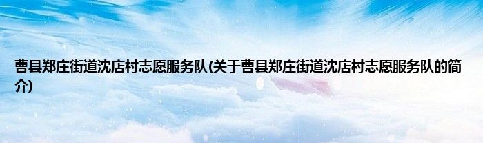本文关于曹县郑庄街道沈店村志愿服务队的简介就讲解完毕,希望对大家有所帮助。