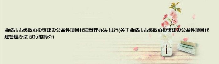 本文关于曲靖市市级政府投资建设公益性项目代建管理办法 试行的简介就讲解完毕,希望对大家有所帮助。