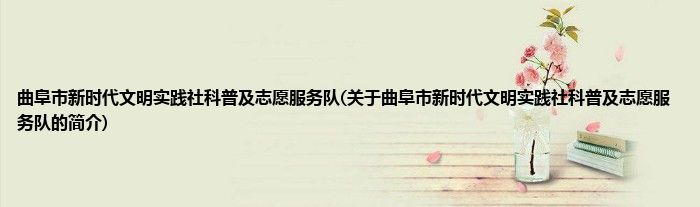 1、 曲阜市新时代文明实践社科普及志愿服务队是由济宁市新时代文明实践社科普及志愿服务队领导下的志愿团体。