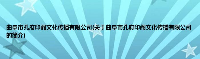 本文关于曲阜市孔府印阁文化传播有限公司的简介就讲解完毕,希望对大家有所帮助。