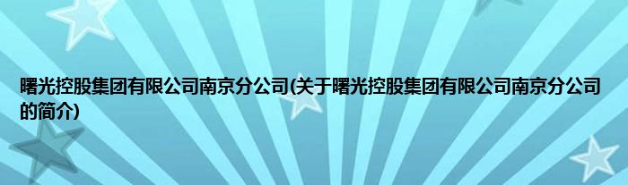 大家好,曙光控股集团有限公司南京分公司,关于曙光控股集团有限公司南京分公司的简介很多人还不知道,现在让我们一起来看看吧!