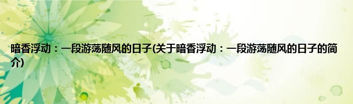 本文关于暗香浮动:一段游荡随风的日子的简介就讲解完毕,希望对大家有所帮助。