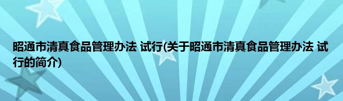 本文关于昭通市清真食品管理办法 试行的简介就讲解完毕,希望对大家有所帮助。