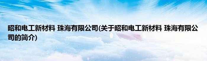 大家好,昭和电工新材料 珠海有限公司,关于昭和电工新材料 珠海有限公司的简介很多人还不知道,现在让我们一起来看看吧!