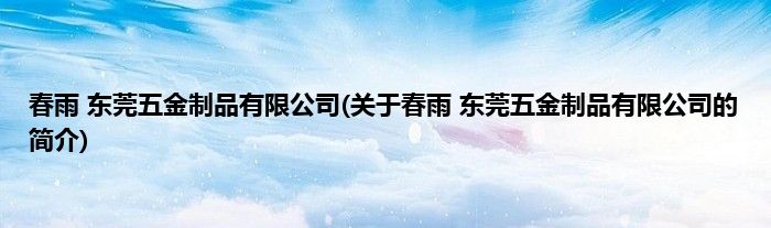 本文关于春雨 东莞五金制品有限公司的简介就讲解完毕,希望对大家有所帮助。