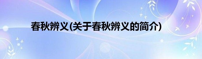 本文关于春秋辨义的简介就讲解完毕,希望对大家有所帮助。
