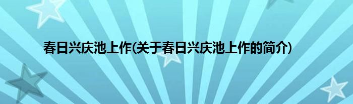 本文关于春日兴庆池上作的简介就讲解完毕,希望对大家有所帮助。