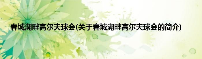 大家好,春城湖畔高尔夫球会,关于春城湖畔高尔夫球会的简介很多人还不知道,现在让我们一起来看看吧!
