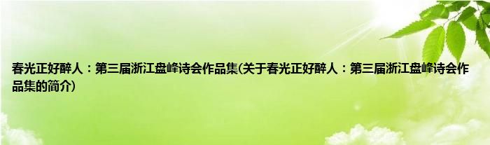 本文关于春光正好醉人:第三届浙江盘峰诗会作品集的简介就讲解完毕,希望对大家有所帮助。