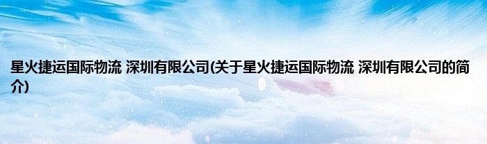本文关于星火捷运国际物流 深圳有限公司的简介就讲解完毕,希望对大家有所帮助。