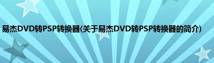 大家好,易杰DVD转PSP转换器,关于易杰DVD转PSP转换器的简介很多人还不知道,现在让我们一起来看看吧!
