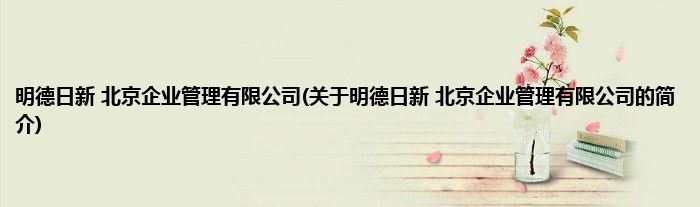 明德日新 北京企业管理有限公司(关于明德日新 北京企业管理有限公司的简介)