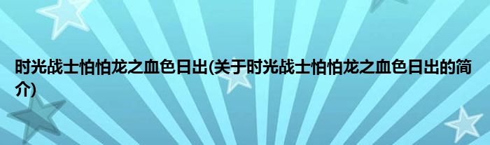 本文关于时光战士怕怕龙之血色日出的简介就讲解完毕,希望对大家有所帮助。