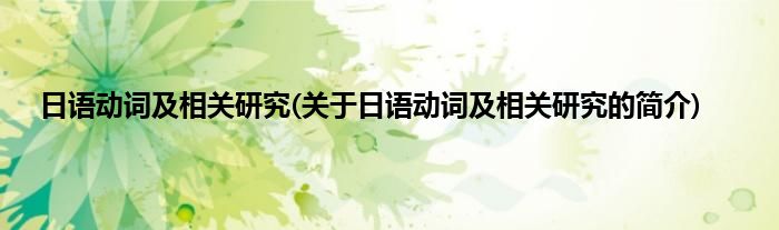日语动词及相关研究(关于日语动词及相关研究的简介)