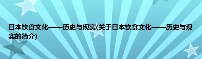 大家好,日本饮食文化——历史与现实,关于日本饮食文化——历史与现实的简介很多人还不知道,现在让我们一起来看看吧!