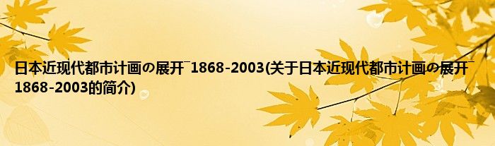 本文关于日本近现代都市计画の展开―1868-2003的简介就讲解完毕,希望对大家有所帮助。