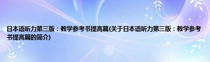 本文关于日本语听力第三版:教学参考书提高篇的简介就讲解完毕,希望对大家有所帮助。