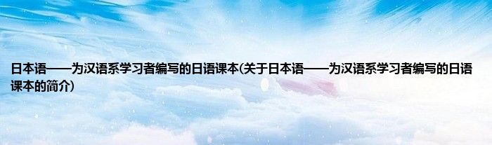 1、 《日本语——为汉语系学习者编写的日语课本》是一本图书。