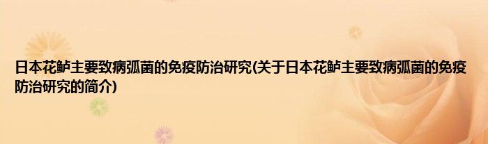 本文关于日本花鲈主要致病弧菌的免疫防治研究的简介就讲解完毕,希望对大家有所帮助。