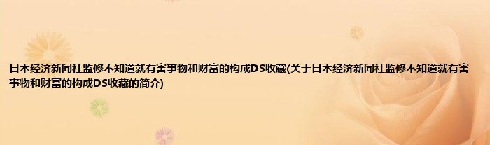 本文关于日本经济新闻社监修不知道就有害事物和财富的构成DS收藏的简介就讲解完毕,希望对大家有所帮助。