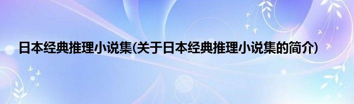 本文关于日本经典推理小说集的简介就讲解完毕,希望对大家有所帮助。