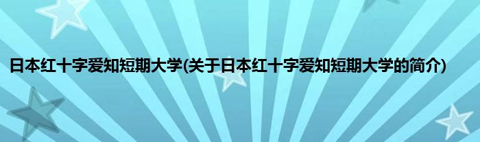 1、 日本红十字爱知短期大学(日本赤十字爱知短期大学、にほんせきじゅうじあいちじょしたんきだいがく)是一所位于日本爱知县名古屋市中村区的私立大学。