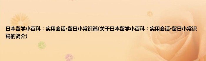 大家好,日本留学小百科:实用会话·留日小常识篇,关于日本留学小百科:实用会话·留日小常识篇的简介很多人还不知道,现在让我们一起来看看吧!