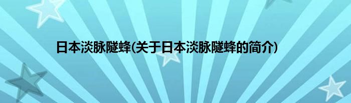 大家好,日本淡脉隧蜂,关于日本淡脉隧蜂的简介很多人还不知道,现在让我们一起来看看吧!