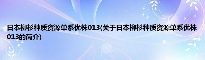 本文关于日本柳杉种质资源单系优株013的简介就讲解完毕,希望对大家有所帮助。