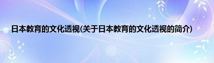 本文关于日本教育的文化透视的简介就讲解完毕,希望对大家有所帮助。