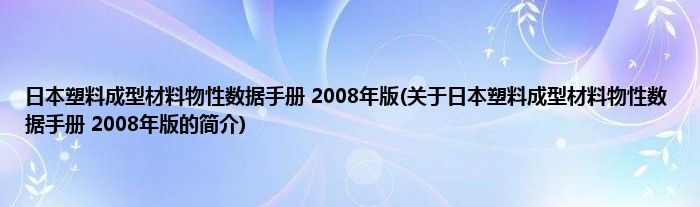 本文关于日本塑料成型材料物性数据手册 2008年版的简介就讲解完毕,希望对大家有所帮助。