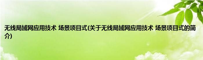 本文关于无线局域网应用技术 场景项目式的简介就讲解完毕,希望对大家有所帮助。