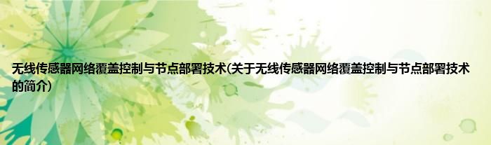 大家好,无线传感器网络覆盖控制与节点部署技术,关于无线传感器网络覆盖控制与节点部署技术的简介很多人还不知道,现在让我们一起来看看吧!