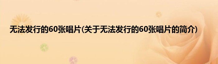 大家好,无法发行的60张唱片,关于无法发行的60张唱片的简介很多人还不知道,现在让我们一起来看看吧!