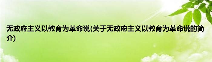 本文关于无政府主义以教育为革命说的简介就讲解完毕,希望对大家有所帮助。