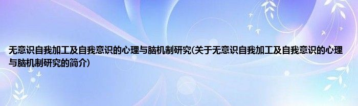 本文关于无意识自我加工及自我意识的心理与脑机制研究的简介就讲解完毕,希望对大家有所帮助。