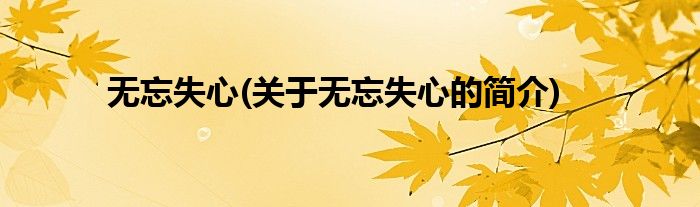 本文关于无忘失心的简介就讲解完毕,希望对大家有所帮助。