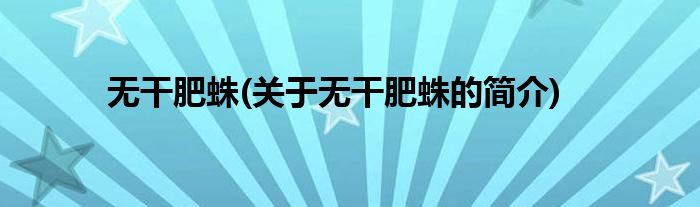 大家好,无干肥蛛,关于无干肥蛛的简介很多人还不知道,现在让我们一起来看看吧!