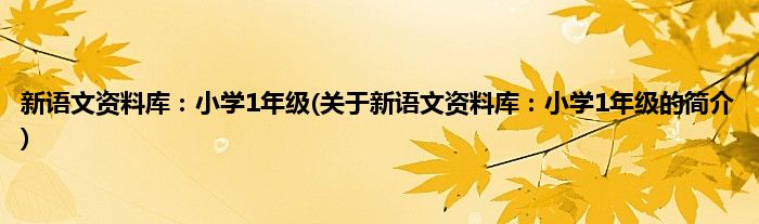 本文关于新语文资料库:小学1年级的简介就讲解完毕,希望对大家有所帮助。